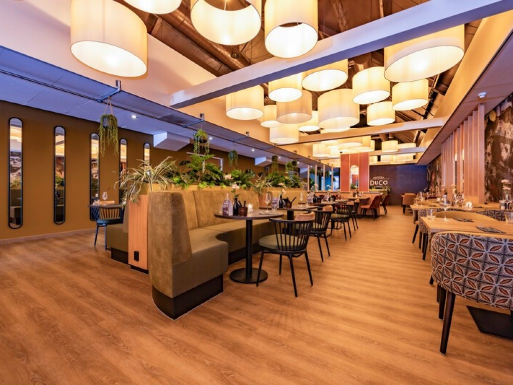 Inrichting restaurant verouderd en niet passend bij kamers en zalen van het restaurant.